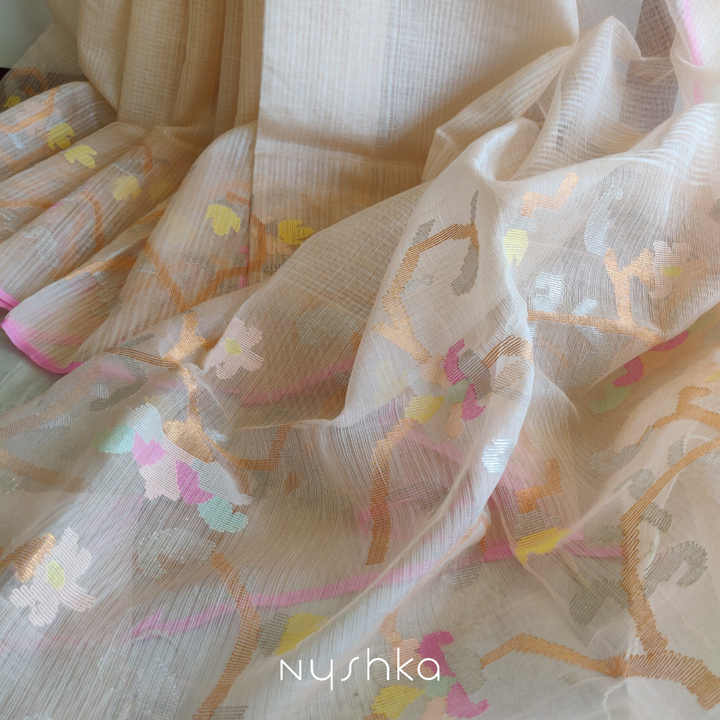Material-Kota. Body pattern-zari and thread floral weaving.